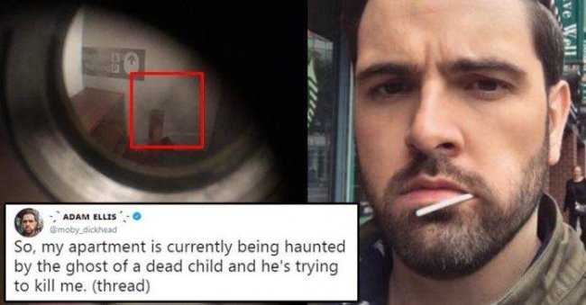 Житель Нью-Йорка Адам Эллис на своей страничке в Твиттере утверждает, что его в настоящее время преследует призрак мертвого ребенка, который пытается убить его.