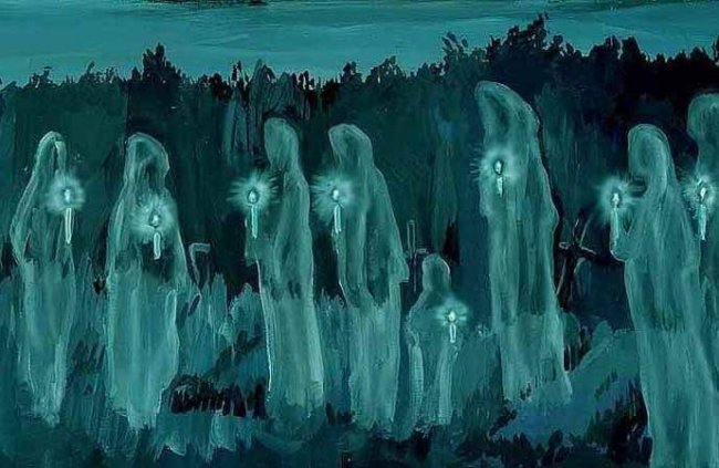 Наши предки также верили, что речь идет о духах умерших, особенно если свечение появляется над могилой. Славянские предания гласят, что особую бдительность следует проявлять после полуночи: мол, в это время духи особенно активны. В славянских мифах также говорится, что блуждающие огни могут указывать на места, где зарыты клады, однако сокрытые там сокровища лучше не трогать, поскольку они прокляты и способны принести человеку только несчастье.