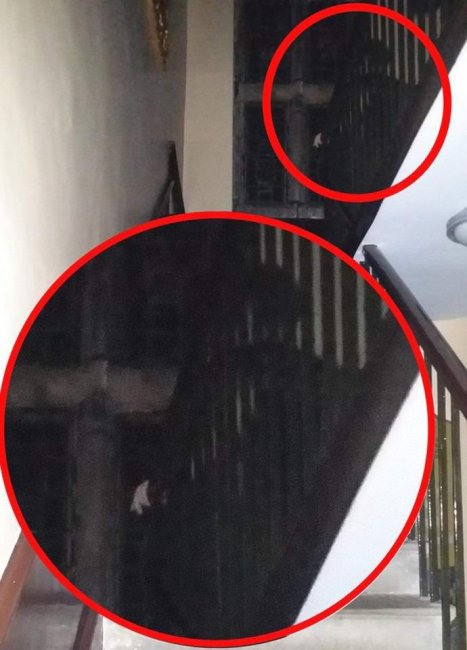 Пятидесятипятилетняя Джули захватила в музей камеру и сделала там несколько снимков. На одном из своих фото женщина решила запечатлеть старую полуосвещенную лестницу возле окна. По словам Кокрофт, в момент съемки на лестнице никого не было. Тем не менее, просмотрев данное изображение позже, шокированная англичанка заметила на нем некого человека в темной одежде, который спускался по ступеням вниз – судя по всему, прямо к ней. Если внимательно присмотреться, можно увидеть его голову с темной прической, спину и даже бледную кисть руки, сжимающую перила.