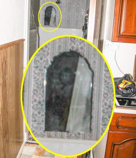 Представленная ниже фотография уже успела облететь большинство англоязычных сайтов, посвященных сверхъестественному. На снимке отчетливо видна бледная человеческая фигура, отражающаяся в небольшом зеркале. На момент съемки фантом словно выглядывал из-за занавески, смотря через зеркало прямо на фотографа.