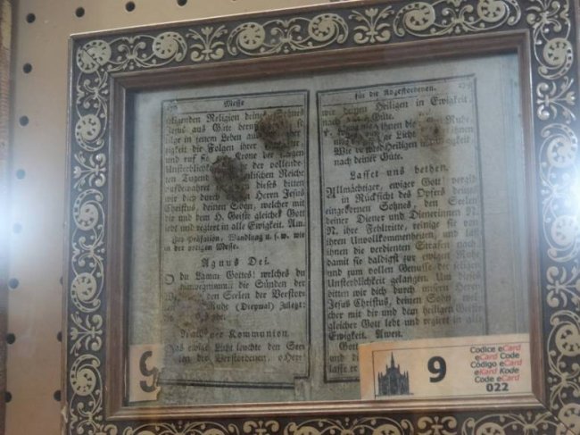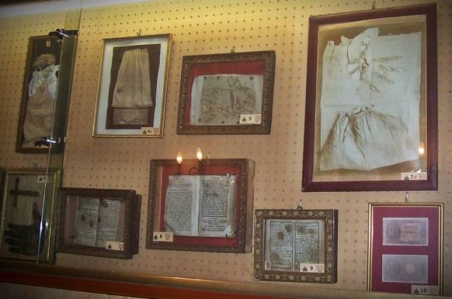 Выжженный отпечаток ладони призрака на странице книги. Этот и другие артефакты на фотографиях ниже выставлены в музее аномалий церкви Del Sacro Cuore del Suffragio (Италия).