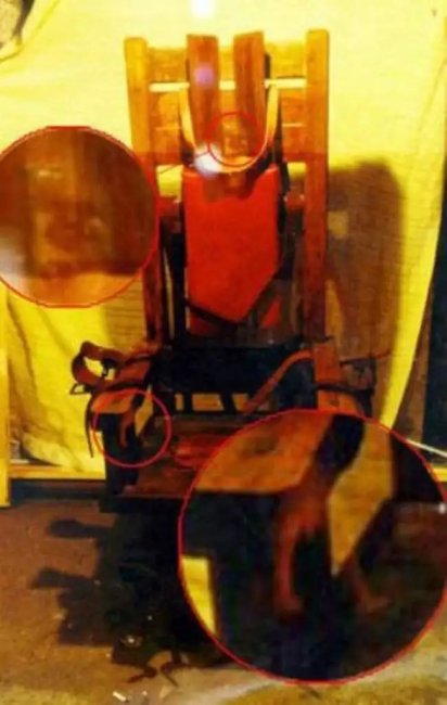 Инженера Теда Лачера наняли обновить электрический стул в Теннеси, и он начал работу с фотографии. Если приглядеться, можно увидеть призрачное лицо и безжизненную руку на подлокотнике.