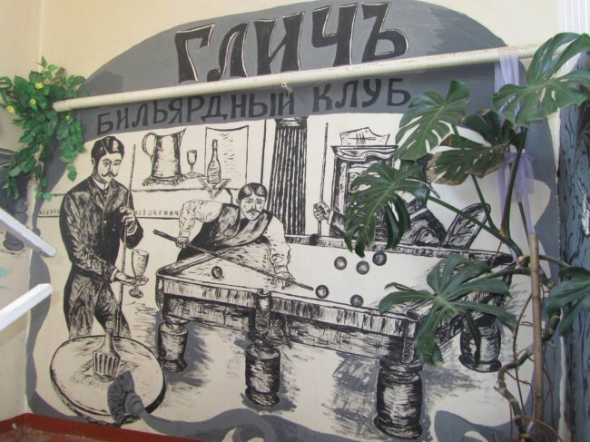 — На втором этаже у нас есть стена, которую как-то предложил расписать один из наших постоянных посетителей. Он нарисовал сарептян, играющих на бильярде. У мужчин лица самые типичные, а единственная женщина поражает необычными чертами. Увидев рисунок, Нона воскликнула: «Так вот же она, ваша хранительница!» и пояснила: таким образом через творческих людей душа кочевницы пытается проявить себя.