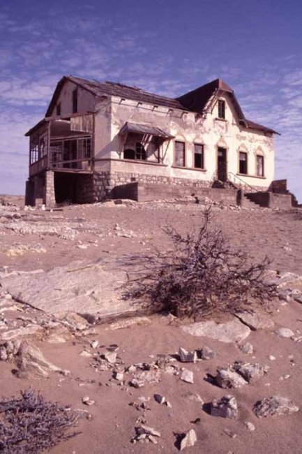 Город Колманскоп (Kolmanskop, Kolmannskuppe), находится в пустыне Намиб в 10 километрах от Людерица и Атлантического побережья. У этого города примечательная и чем-то романтичная история. Дело в том, что именно в этом пустынном уголке алмазов было столько, что рабочие ползали на животе и запросто сгребали их щеткой в совок.