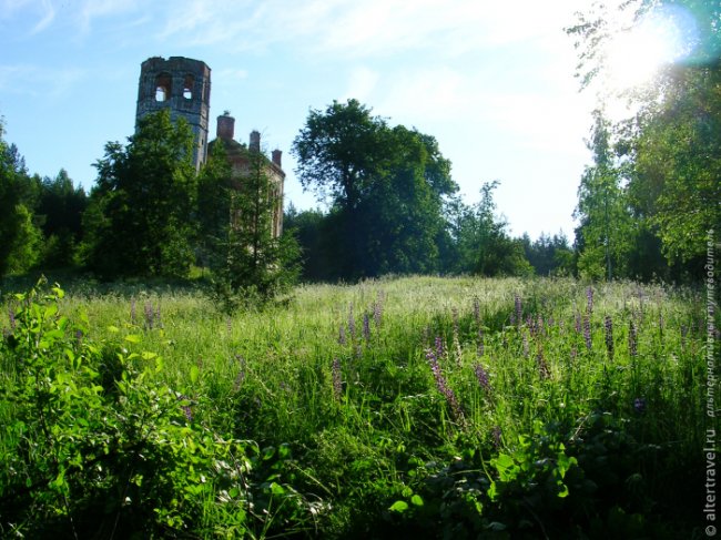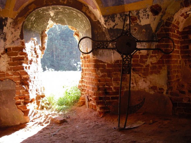 Мы с Мариной долго изучали нутро церкви, пока не добрались до алтарной части. Зашли, атмосфера какая-то очень дискомфортная. Именно на психическом, эмоциональном уровне. Было душно и гулко. Марина вышла, и я осталась одна. Долго стояла посередине и рассматривала свод, как вдруг все стихло: голоса, шум леса, ветер. Полная тишина, вакуум. И вдруг от стен начинает идти сначала невнятный гул, а потом угадывается церковное пение, несколько голосов, мужские и женские. Пение как будто становится все громче, и вдруг — обрыв. Все привычные звуки возвращаются обратно. Потом я еще несколько раз ходила в это место, подолгу стояла одна, но так ничего больше и не услышала.