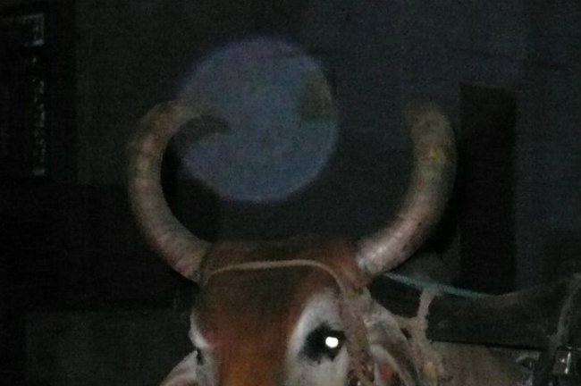 Сфера рядом с левым рогом быка. Самое необычное на этом фото то, что сфера появилась перед рогом, при этом на ней видна падающая тень от рога.