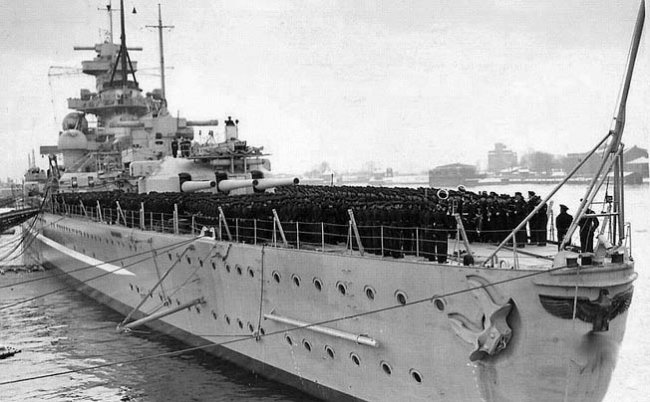 Год спустя линкор участвовал в обстреле Осло, подвергся атаке и был торпедирован. Следуя на ремонт, он в широком устье Эльбы столкнулся с гражданским трансатлантическим лайнером «Бремен», который в результате сел на мель и вскоре был расстрелян британскими бомбардировщиками.