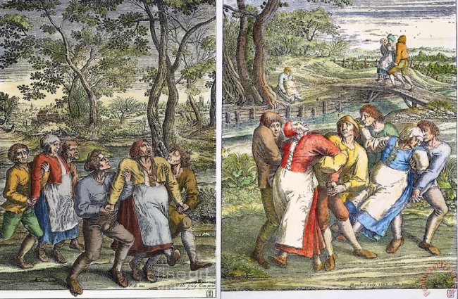 В 1374 г. странное массовое помешательство начало распространяться в Германии. Оно просуществовало около двухсот лет и исчезло так же внезапно, как и появилось. Людей охватила непреодолимая страсть к танцам. Они собирались толпами и с венками в волосах кружились в хороводах с дикими криками и безумными взглядами.