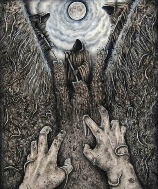 На основании многочисленных рассказов о погребенных заживо Иоганн Еллизен пишет: «…Он чувствует себя стесненным между досками, кои не допускают его простирать рук своих… Он силится переменить положение свое, но в то самое время одолевают его испарения ядовитых паров от близлежащих трупов.