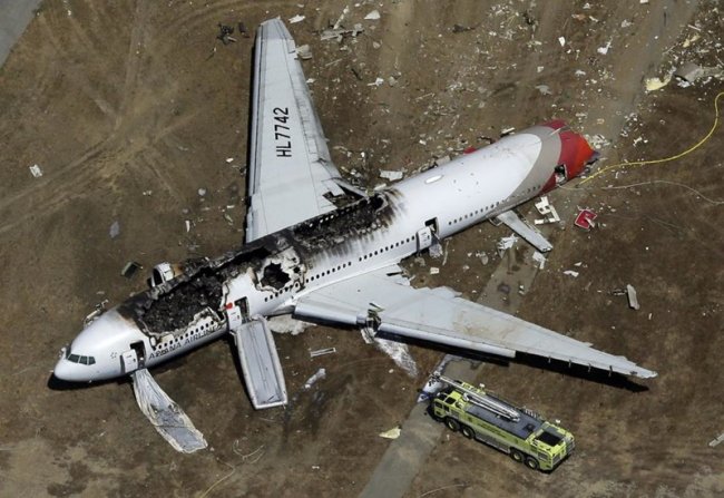 6 июля 2013 года из-за ряда ошибок, допущенных пилотами при снижении и посадке, в международном аэропорту Сан-Франциско разбился Boeing 777 компании Asiana Airlines, следовавший из Сеула. При ударе о землю от самолёта оторвались хвостовая часть и левый двигатель. Проскользив днищем по взлётно-посадочной полосе, лайнер резко подпрыгнул вверх, развернулся на 360 градусов и проскользил ещё несколько метров до полной остановки. Правый двигатель загорелся, огонь начал распространяться по фюзеляжу.