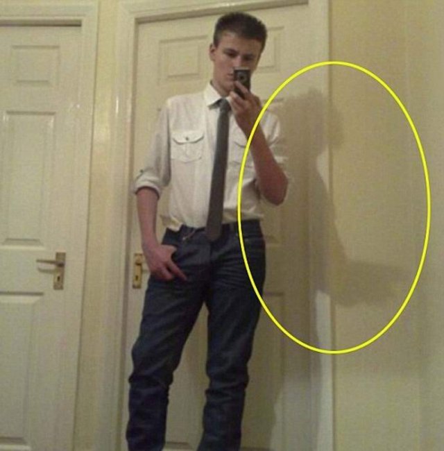 Несколько дней назад двадцатитрехлетний житель английской столицы Конор Райт выложил в социальную сеть «Facebook» старую фотографию, полученную им в шестнадцать лет. На первый взгляд, снимок представляет собой типичное селфи, сделанное возле зеркала. Тем не менее, друзья лондонского трейдера нашли на фото весьма непонятную деталь, о которой сразу сообщили Конору.