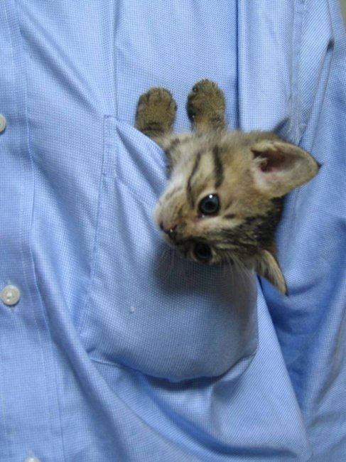 На последующие вызовы в течение всех суток кись ездил со мной — благо, ничего серьезнее температур и хронического недоебита не попадалось. На нашей форме по бокам были нашиты большие карманы, и котенька отлично умещался в один из них.