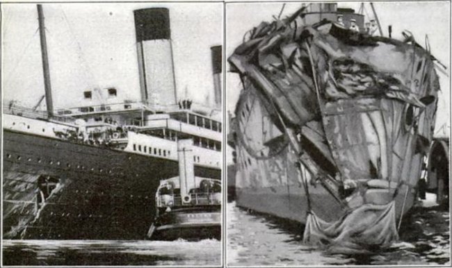 В 1910 г. 23-летняя Вайолетт оказалась на огромном лайнере «Олимпик» – первом из трех судов такого класса кампании «White Star Line». Через год громоздкий «Олимпик» в результате неудачного маневрирования столкнулся с крейсером «Хоук». 14-метровая пробоина была выше ватерлинии, и судно осталось на плаву. К счастью, столкновение обошлось без человеческих жертв, но лайнеру был нанесен серьезный урон.