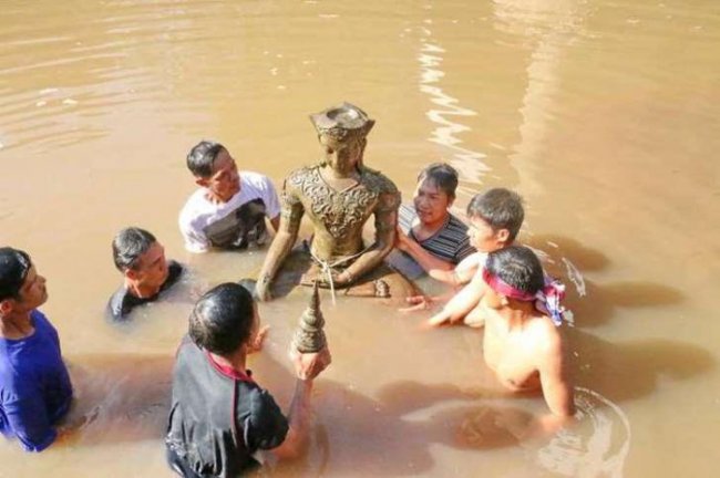 Древнюю статую на дне реки удалось разглядеть моряку тайского судна «совершенно мистическим образом». На ночной вахте он увидел слабое свечение в воде недалеко от берега. В начале этой недели десять местных жителей исследовали дно и через 20 минут ими была поднята на поверхность древняя статуя.