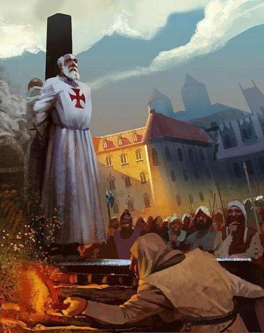 По легенде, на костре великий магистр проклял папу и короля: «Климент, судья несправедливый, вызываю тебя на Суд Божий на протяжении 40 дней от сегодня, а тебя, король Филипп, также несправедливый, до года».