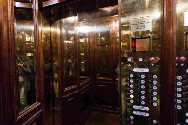 «Обычный лифт был кем-то занят и тогда мы решили воспользоваться служебным лифтом. Он оказался неожиданно очень старым и в кабине стоял чей-то стул. Я подумала, что горничная поставила его или случайно забыла.