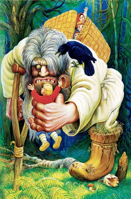 В образе Вердиоки отчетливо видны черты волшебника-великана. Он разрушает все вокруг себя, убивает каждого встречного. После гибели Верлиоки действие злого волшебства прекращается, и воскресают все, кого он убил. Для борьбы с злодеем объединяются люди (дед), животные (селезень) и неживые предметы (желудь, веревочка).