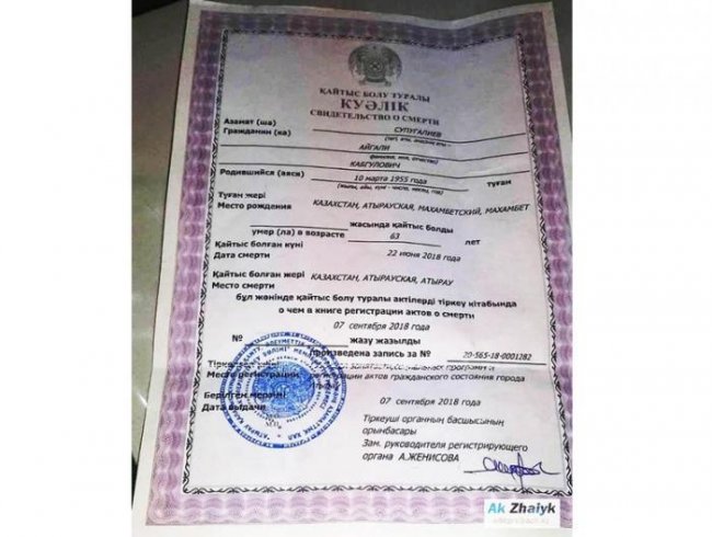 Родственники Супугалиева, особенно его брат Есенгали, естественно, стали его оплакивать и потом похоронили по мусульманскому обряду на местном кладбище. Датой смерти указали дату похорон — 4 сентября. Также было выдано официальное свидетельство о смерти Айгали Супугалиева.