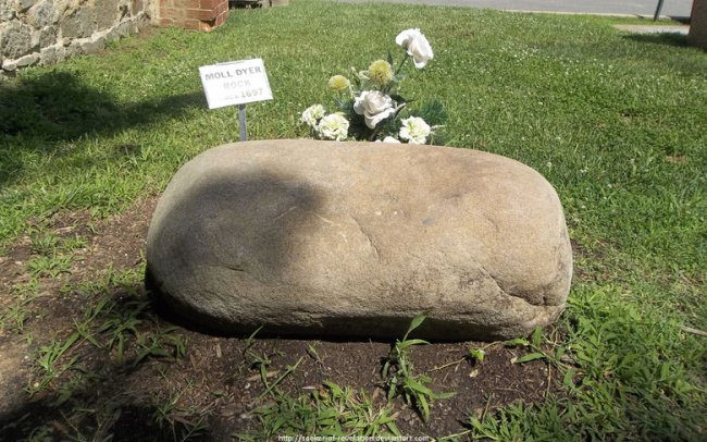 В 1968 году Филип Лав, редактор газеты «The Evening Star» и его жена решили найти в лесу камень Молл Дайер и обнаружили округлый булыжник, на котором были подходящие отпечатки. Впрочем этот камень находили еще в 1911 году при расчистке оврага в местечке Кловер Лот, и согласно записям «отпечатки колен все еще были хорошо видны на нем».