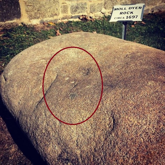 Большой округлый камень, на котором есть то, что называют отпечатком ладони и коленей Молл Дайер, еще в 1972 году был положен на газон возле здания городского суда Леонардтауна. А на лесной дороге Moll Dyer Road будто бы часто видят ее призрак.
