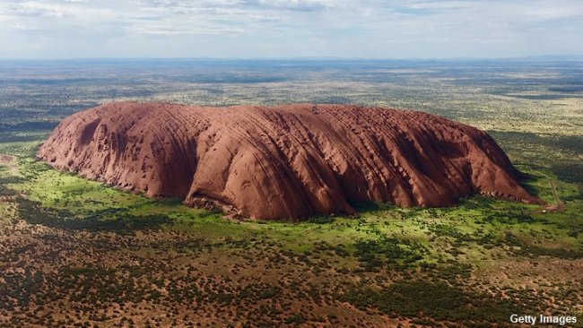 Скала Улуру — одиноко стоящая массивная древняя скала ярко-оранжевого цвета. Расположена в 450 км к юго-западу от города Алис-Спрингс в Центральной Австралии. Для местных аборигенов это место священно и связано с их богатой мифологией. По мифам аборигенов, когда-то здесь обитал хозяин горы — водяной питон. А на крутом склоне жил чёрный варан. Аборигены регулярно проводят обряды у этой священной скалы.