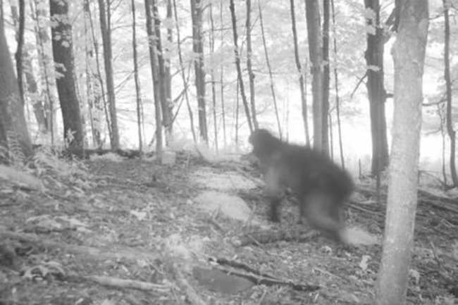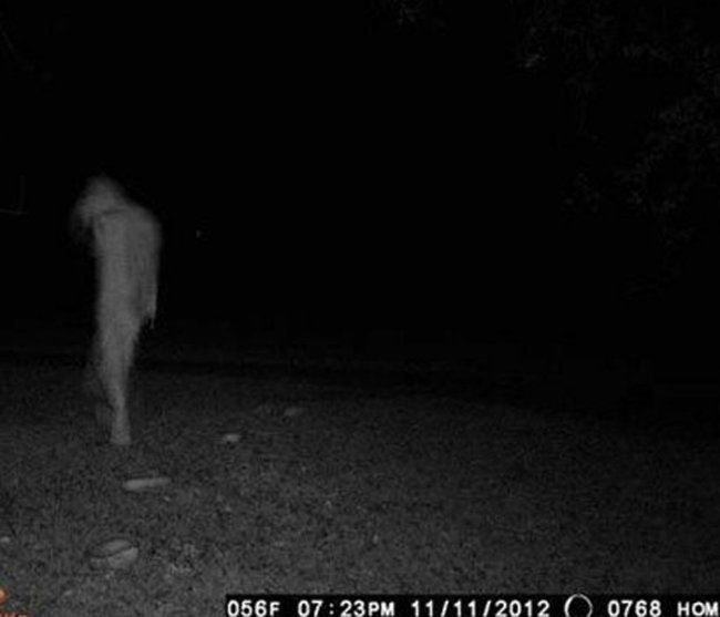Загадочное существо попало на камеру июньской ночью 2011 года. Зверь пробежал по лесу так быстро, что на фотографии остался лишь его размытый силуэт. Приглядитесь, он очень похож на снежного человека.