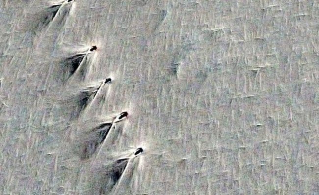 Весна 2018 года стала для пользователей сети настоящим открытием – на снимках Антарктиды из космоса обнаружена целая череда странных объектов. Если бы форма объектов была разной, они были бы разбросаны в хаотическом порядке, никто не обратил бы на них внимания. Но все объекты выстроены в ровный «гребень» с одинаково заостренными верхушками. Каждый элемент «гребня» длиной от 50 м, общая длина первого ряда «гребней» не менее 1,5 км. Есть и второй ряд, пока не так хорошо видимый на снимках, к тому же отличающийся по форме. Третий малозаметный «участок гребня» вообще как будто проваливается в толщу, а форма его напоминает треугольник.