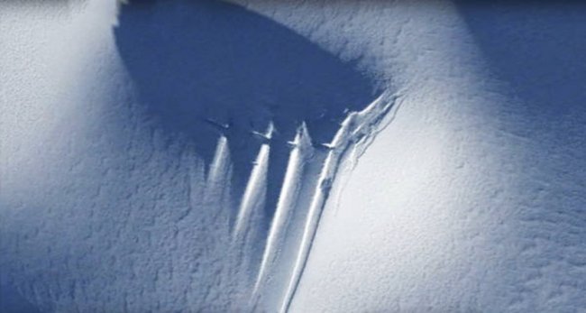 Невероятный вид горы напоминает снежную поверхность, на которой видны следы от четырех «когтей». Создается ощущение, что некое исполинское животное оставило там отпечаток лапы. Гора с 4 вершинами украшена рядами пиков, причем каждый следующий ряд по размерам меньше предыдущего. Исследователи предполагают, что «пики» – часть какого-то объекта, находящегося под толщей снега. Но пока это лишь гипотеза, которую еще надо доказать. Подождем обновленных снимков, возможно, они приоткроют завесу тайны.