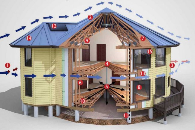 Дизайнерская компания Deltec Homes создает жилые помещения, предназначенные для противостояния катастрофическим штормам. Модель дома Deltec полностью круглая, чтобы ветер огибал структуру, а не концентрировался с одной стороны. Внутренние конструкции, поддерживающие этажи, расходятся как спицы на колесе, что еще больше усиливает структуру. Каркасный пиломатериал, используемый в домах Deltec, может выдерживать до 1200 килограммов на квадратный дюйм, что делает его в два раза прочнее обычного материала для каркасов.