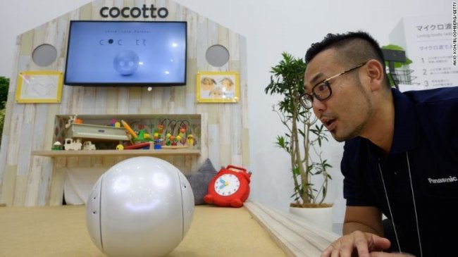 Эта белая штука — Cocotto от Panasonic. Похожая по размерам и форме на шар для боулинга, на самом деле Cocotto — идеальная нянька, с которой родители могут спокойно оставить ребенка — по крайней мере, старшего дошкольного возраста и выше. В соответствии с полученными инструкциями, электронная няня позанимается с ребенком полезными обучающими упражнениями и играми, вовремя напомнит ребенку о том, что надо ложиться спать, а на ночь споет ему любимые колыбельные, загруженные в память, или новые песни для сна, которые скачает тут же из облачного хранилища.