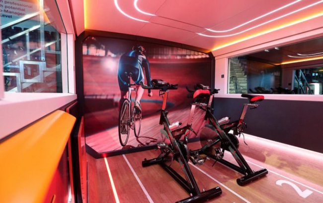 Двухэтажные вагоны предназначены для нескольких целей: в некоторых установлены тренажёры и беговые дорожки, в других — игровые консоли, вращающиеся кресла и широкоформатные телевизоры. Также предусмотрены изолированные пространства для сна или деловых переговоров с шумоподавлением и планшетами, встроенными в столы.