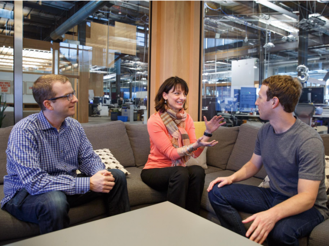 Регина Дуган с техническим директором Facebook Майком Шрепфером и Марком Цукербергом. Фото Facebook
