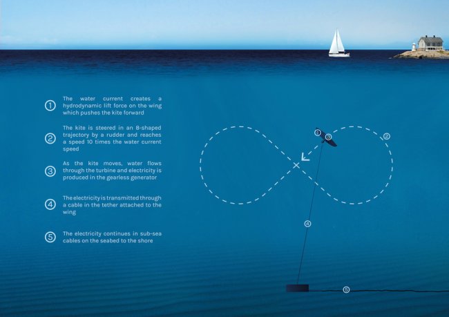 Разработка альтернативных источников получения энергии в последнее время все сильнее набирает обороты. И компания из Швеции под названием Minesto недавно вступила в эту гонку, получив разрешение на сооружение вблизи одного из островов Уэльса подводной фермы Deep Green. Ферма будет построена на базе энергетических установок мощностью 10 мегаватт, а сами генераторы чем то напоминают бабочек, «летающих» в воде.
