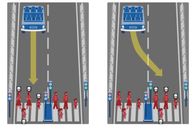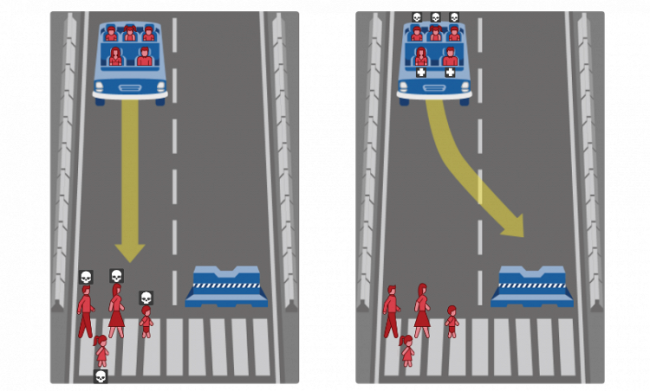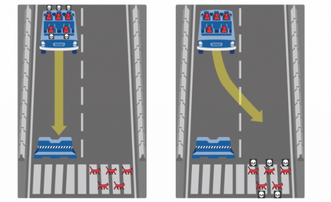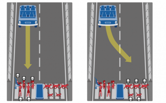 Здесь и далее иллюстрации к задачам, разработанным MIT. На дороге описываются ситуации, при которых жертв избежать невозможно, но у компьютера есть возможность выбора.