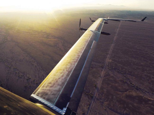 В июле Facebook стала на один шаг ближе к своей цели по обеспечению всеобщего глобального доступа к Сети, осуществив 96-минутные испытания полномасштабного дрона Aquila. Чтобы оставаться в воздухе в течение длительного времени, этот самолет имеет массивные крылья с размахом в 40 метров и легкий фюзеляж весом в 450 кг. Окончательная версия Aquila будет работать на солнечной энергии и сможет оставаться в воздухе до трех месяцев, обеспечивая широкополосный доступ в Интернет на площади до 100 километров.