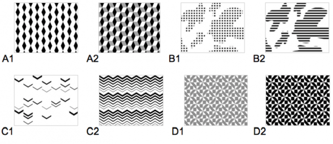 Это исследование было проведено Джорджем Стилиосом и Мейхуаном Ченом и включало два этапа. На первом этапе они испытали десять пар узоров на 20 участниках. Может показаться, что группа недостаточно большая, но каждый участник проходил испытание в течение нескольких часов. Полученные данные коррелируют у более 80% участников; обычно такого рода исследования считаются достаточными, чтобы делать выводы о населении в целом.
