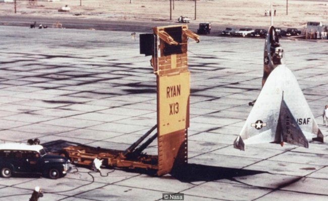 Одним из самых радикальных проектов того времени стал X-13, известный как Vertijet. Он мог взлетать вертикально, парить, летать, как обычный самолет и приземляться как вертолет. Для всего этого конструкторы оснастили Vertijet «вектором тяги»: парой турбореактивных двигателей, управляемых пилотом.