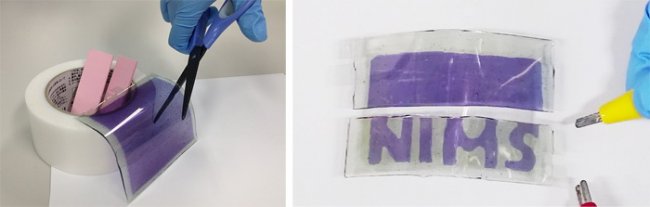 Японский институт материаловедения разработал гибкий огранико-металлический гибридно-полимерный дисплей, который можно разрезать пополам, не боясь при этом его сломать. Технологии требуется всего несколько секунд на адаптацию к новой форме и распределение питания. При этом даже в месте пореза сохраняется последняя информация, которая выводилась на него.