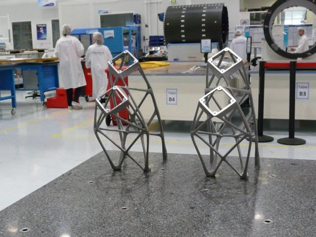 Аэрокосмическая компания Thales Alenia Space изготовила самые крупные 3D-печатные компоненты космических аппаратов на сегодняшний день. Два антенных кронштейна почти полуметровой высоты предназначены для телекоммуникационных спутников Koreasat-5A и Koreasat-7. Кронштейны имеют бионическую конструкцию, а вес каждой детали составляет всего 1,13 кг. Для производства были использованы промышленные 3D-принтеры немецкой компании Concept Laser на основе технологии LaserCUSING – фирменного варианта селективного послойного наплавления (SLM) металлических порошков. В качестве материала использовался легкий алюминиевый сплав, а достаточно высокий объем рабочей камеры установок X line 1000R позволил напечатать каждый из кронштейнов целиком, без слабых зон в местах привычных сварочных швов.