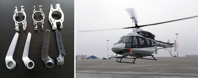 Холдинг «Вертолеты России» намеревается использовать 3D-печатные компоненты в конструкции пилотируемых летательных аппаратов. На выставке «Иннопром 2016» представители холдинга продемонстрировали опытные детали для вертолетов «Ансат»: 3D-печатные алюминиевые дверные ручки и элементы системы управления хвостовым винтом. Компонент системы управления был представлен сразу в трех вариантах, один из которых изготовлен традиционными методами, а два других – с использованием аддитивных технологий. Отмечается, что 3D-печатные варианты, выполненные из алюминия и титана, вышли примерно в два раза легче стандартного за счет бионического дизайна, ставшего возможным благодаря технологии селективного лазерного спекания.