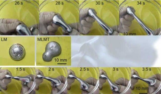 К сожалению, из-за высокого поверхностного натяжения, намагничиваемым жидким металлом можно было двигать только по горизонтали и только внутри какой-либо жидкости. Но исследователи нашли способ двигать им даже по вертикали. Они уменьшили натяжение, создав жидкий сплав из галлия, железа, индия и олова — при погружении в соляную кислоту, на поверхности материала образовался слой оксида галлия, который и повлиял на поверхностное натяжение.