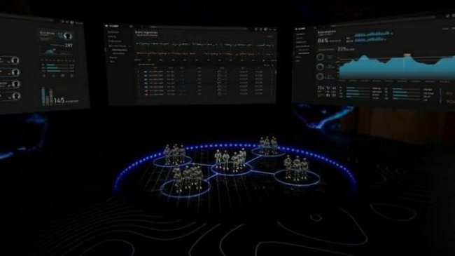 При включении гарнитура показывает карту местности с местонахождением пользователя и всех других членов отряда с IVAS.