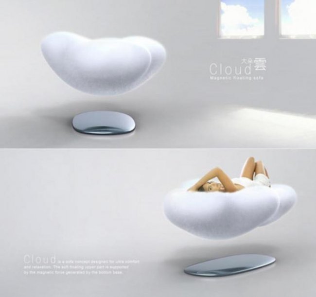3. Плавающий диван. На таком диванчике будет очень удобно отдохнуть после трудового дня. Он принимает форму вашего тела. Кроме того, у дивана не будет ножек, он словно подвешен в воздухе.