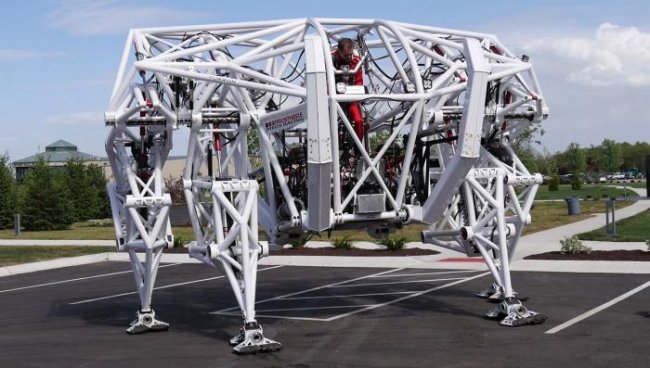 Экзоскелет очень похож на громадного робота-паука, его можно смело снимать в фантастических фильмах. Весит громадина 1600 кг, что относительно немного для такого гиганта. В ширину экзоскелет достигает 5,5 м, его высота 4 метра, а длина 5 м. У робота есть 4 большие ноги и еще две конечности спереди. Все это и сам корпус скелета сделаны из прочной хромированной стали — надежного материала, применяемого при строительстве самолетов и спортивных автомобилей. Внутри машины установлен источник питания — литиевая кастомизированная батарея емкостью 36 кВт/ч с рабочим напряжением 96 В. Работает робот на 2 электрических двигателях, внутри у него 2 насоса, гидравлические цилиндры и большое количество проводов.
