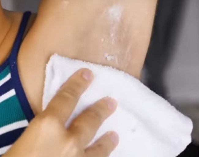 Если от темной одежды остаются следы на подмышках, поможет шипучка. Смешайте 1 ст. л. морской соли, 1 ст. л. пищевой соды, 0,3 ст. воды и 1 ст. л. белого уксуса (9%). Готовой смесью нужно протереть подмышки – след исчезнет без остатка.