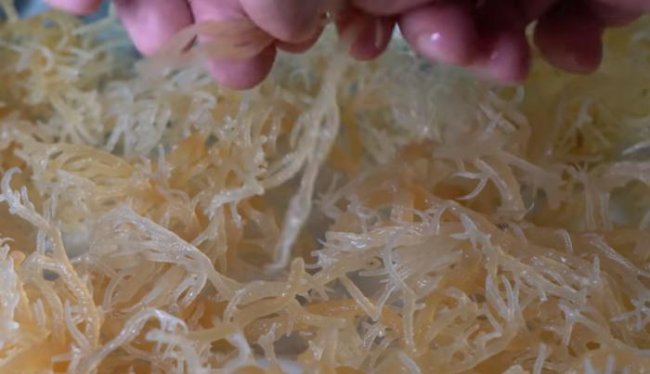 После длительной химической реакции водоросли превращаются в тугой гель каппа-каррагинан. Чтобы нейтрализовать щелочь, нужно на сутки поместить вымоченные скелеты растений в обычную воду.