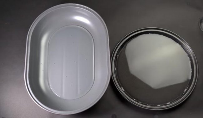В данном случае для изготовления материала нужно смешать 15 грамм каппа-каррагинана, 7 грамм крахмала, 1 грамм глицерина и залить смесь 150 мл воды. После тщательного перемешивания следует подогреть смесь в микроволновке до закипания и вновь хорошо перемешать. Жидкий пластик готов.