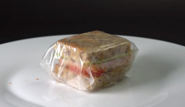 Бутерброд в пленке из съедобного пластика, которую можно вместе с ним и съесть