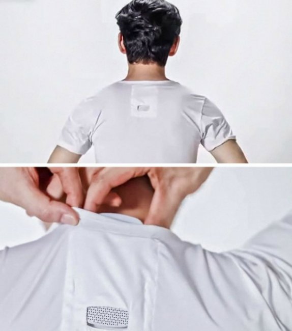Мужская футболка с маленьким встроенным кондиционером сзади, который не позволит спине вспотеть даже в самый жаркий день.