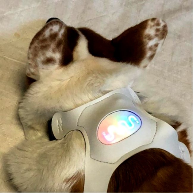 Одежда для собак, оборудованная специальными датчиками, которые анализируют настроение питомца и отображают эти данные в форме шкалы и цвета на маленьком экранчике.